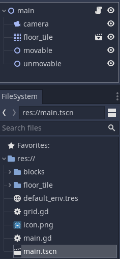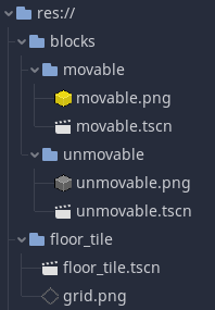 in floor_tile.tscn, set position.y to -1 “movable” and “unmovable” are both Node 2D and acts as containers for our blocks.